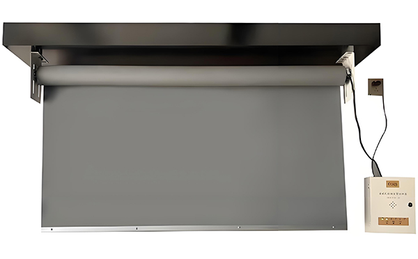 连接电源线和控制线,将托里挡烟垂壁安装在支架上,并用螺丝固定。